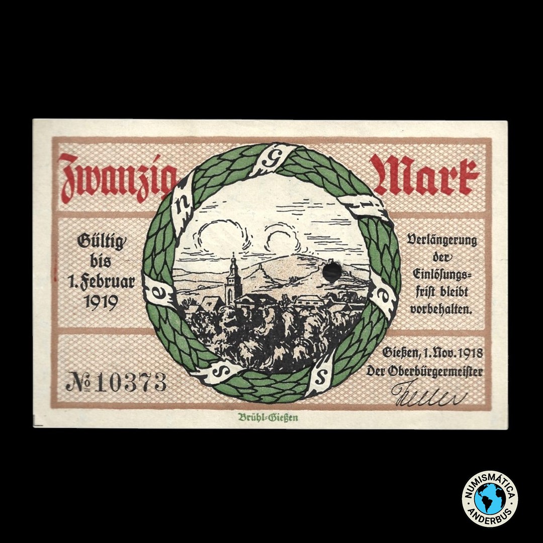 Alemania Ciudad de Giessen 20 marcos 1918 / «Cancelado»