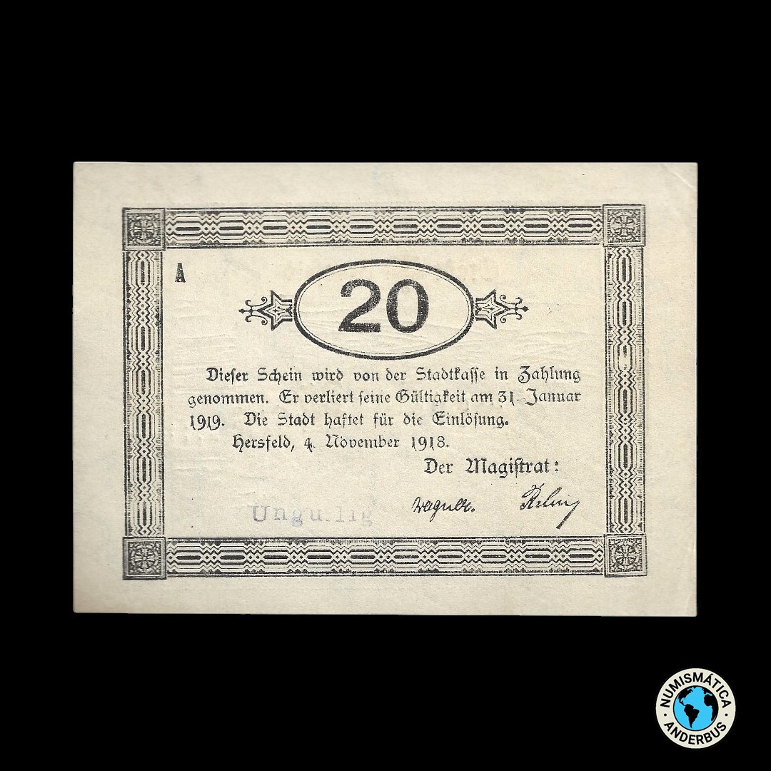 Alemania Ciudad de Hersfeld 20 marcos 1918 / «Cancelado»