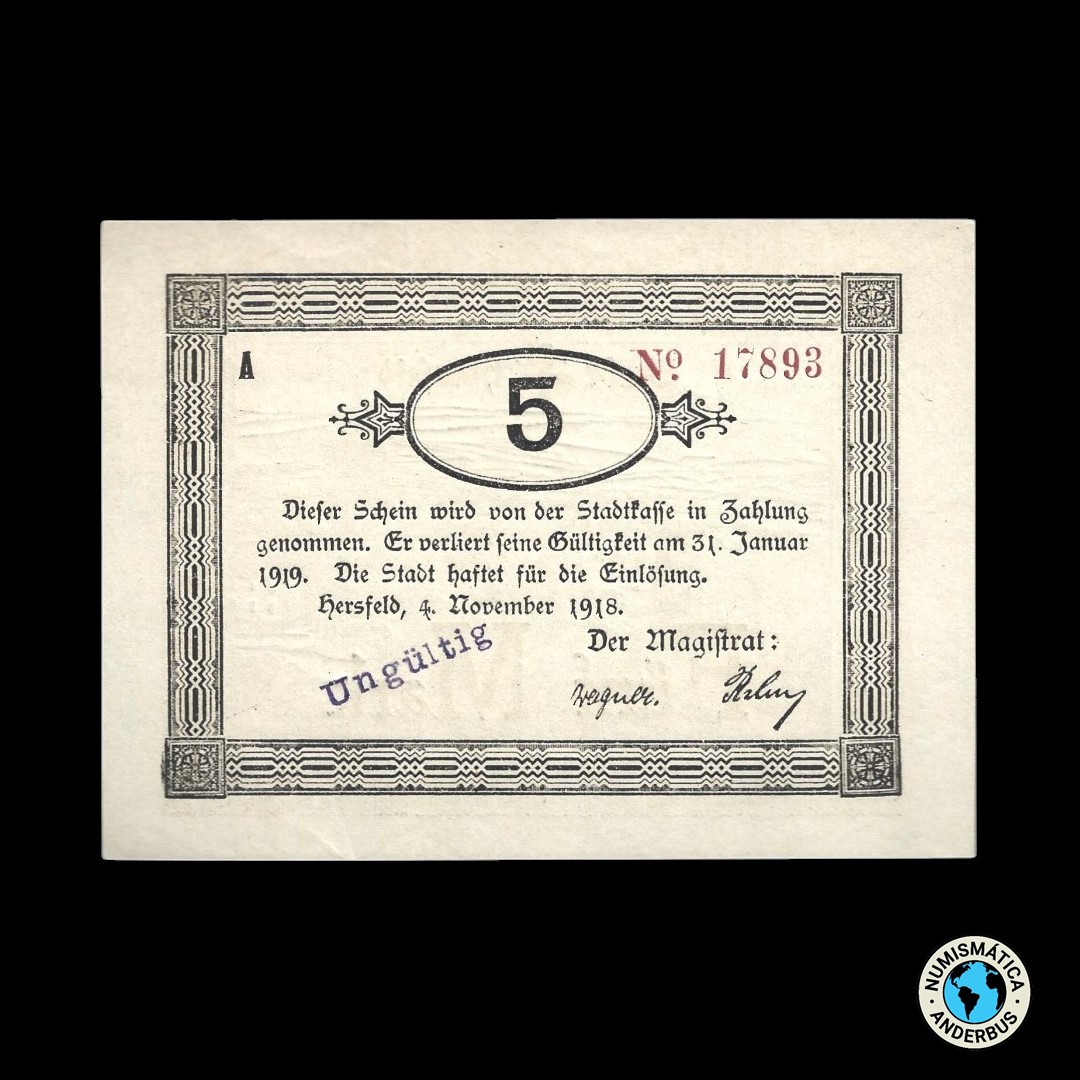 Alemania Ciudad de Hersfeld 5 marcos 1918 / «Cancelado»