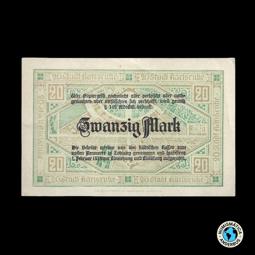 Alemania Ciudad de Karlruhe 20 marcos 1918