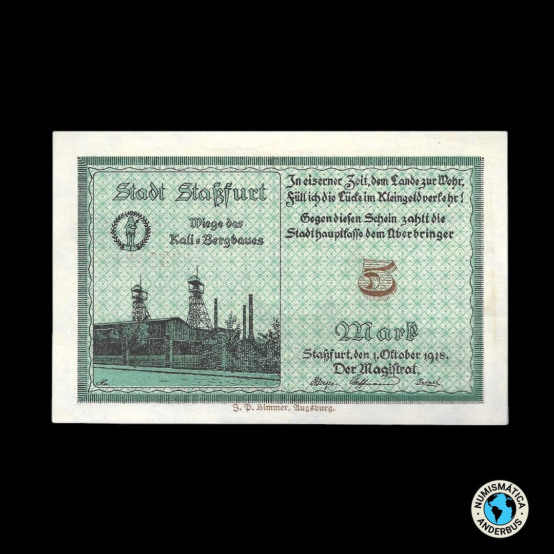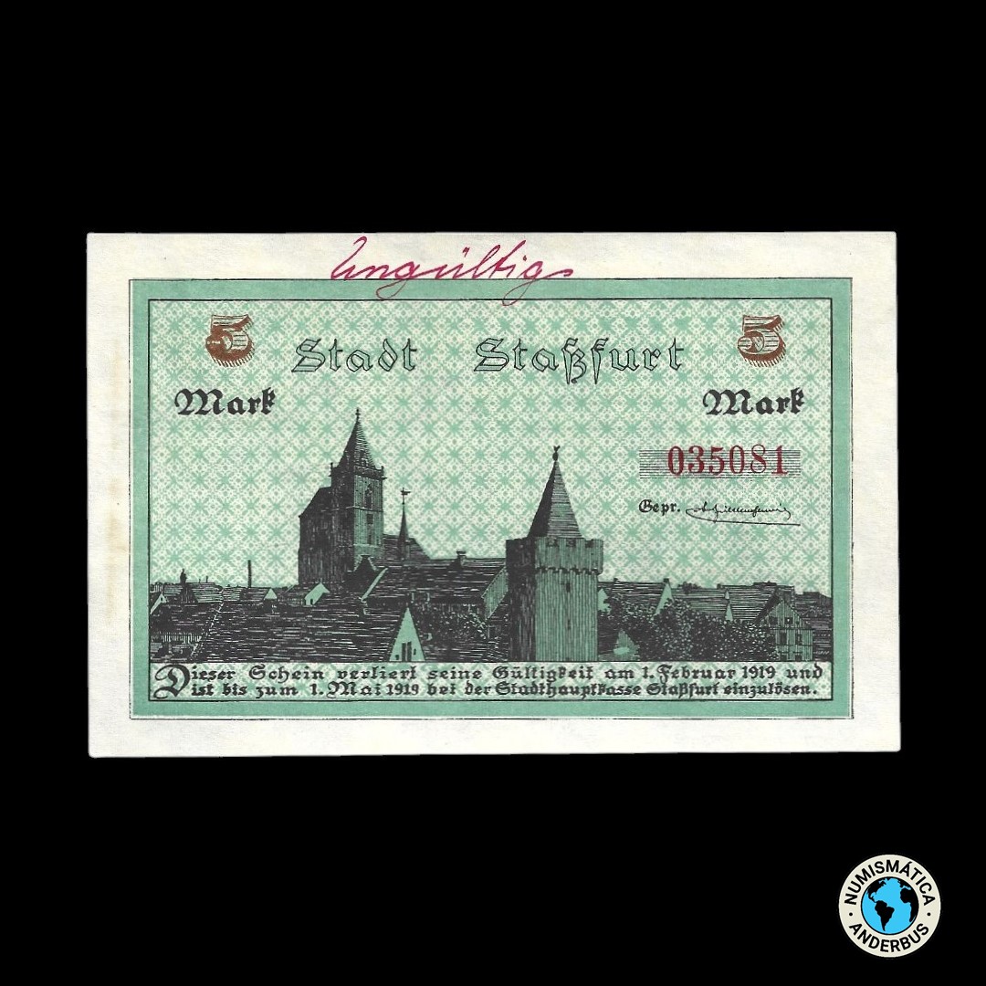Alemania Ciudad de Stassfurt 5 marcos 1919 / «Cancelado»