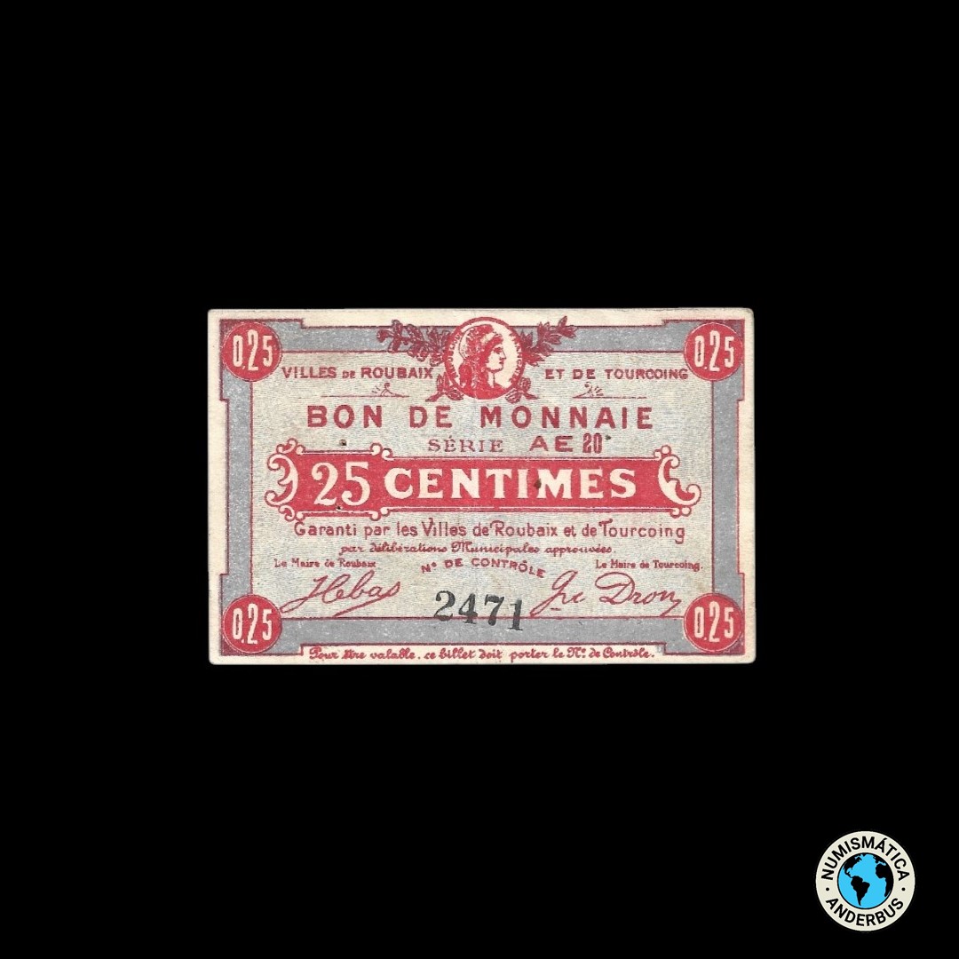 Francia Ville de Rubaix y Turcoring 25 centimes 1917
