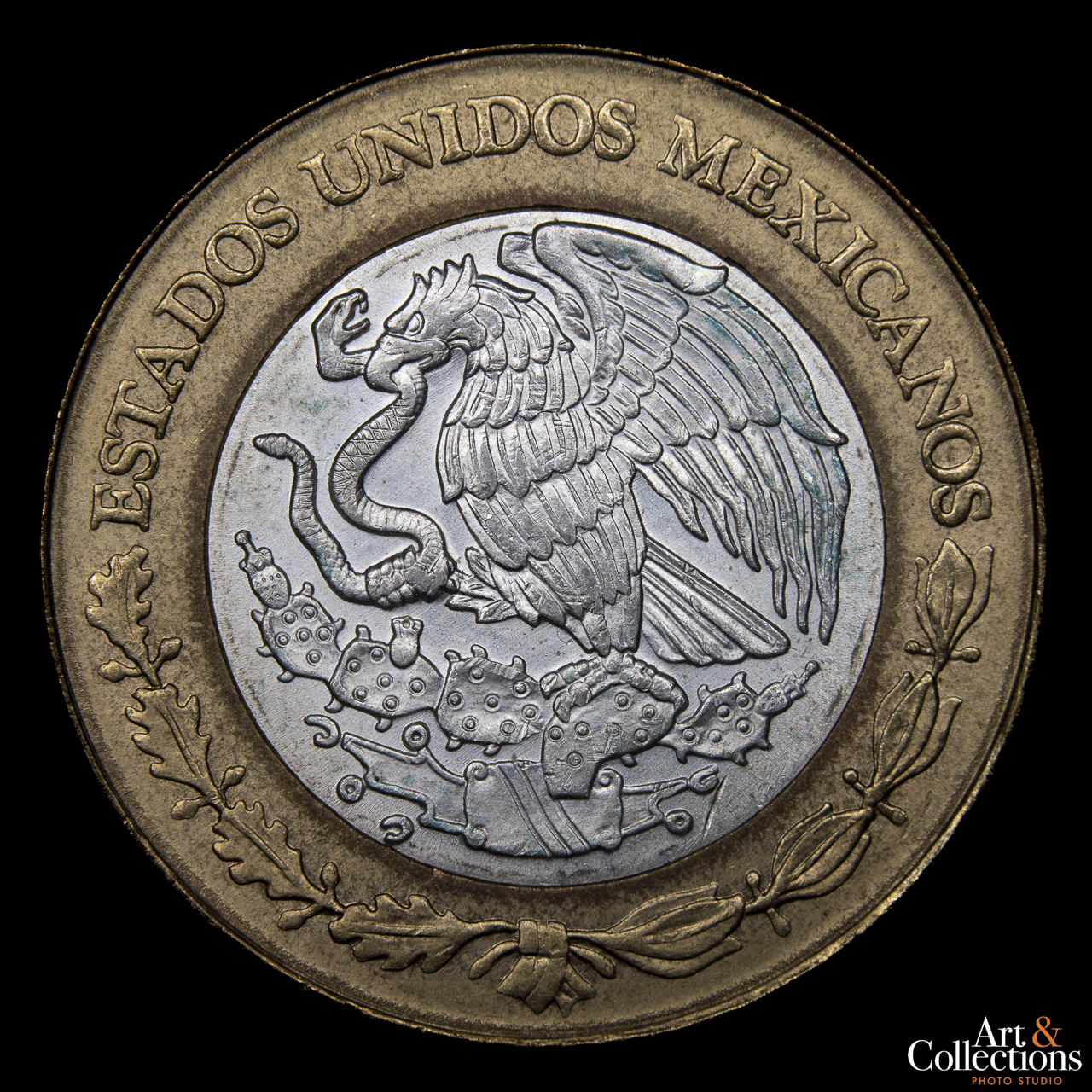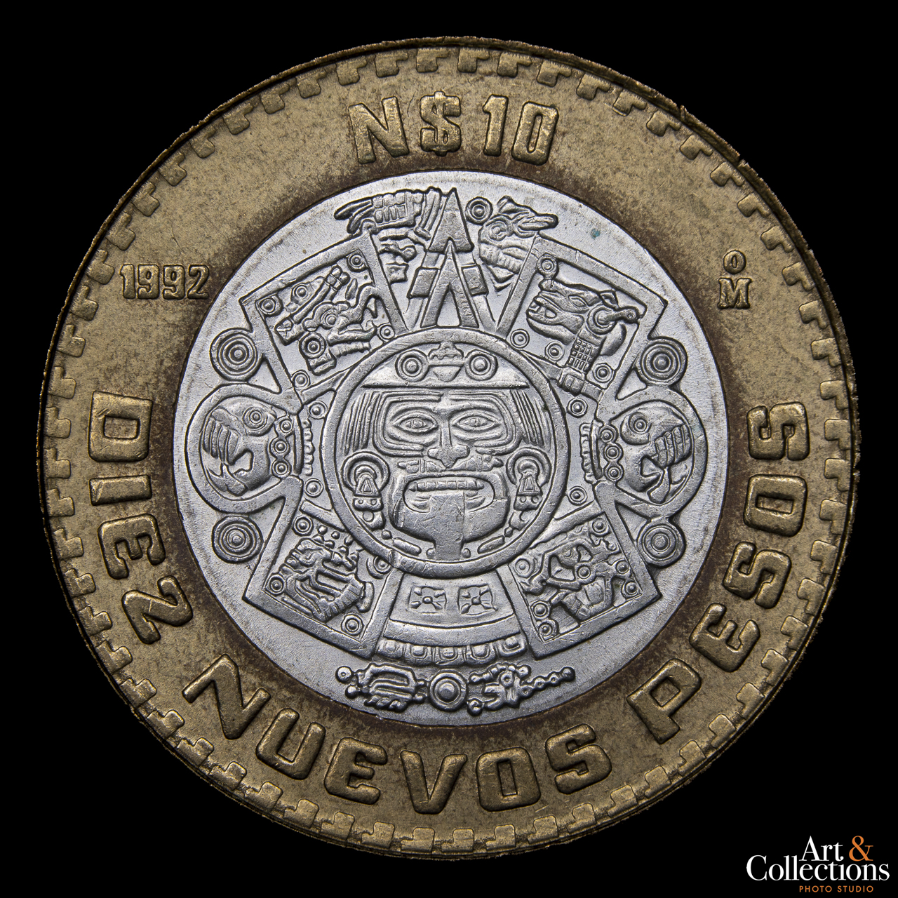 México 10 Nuevos Pesos 1992 (Piedra del Sol representando a Tonatiuh con la máscara de fuego)