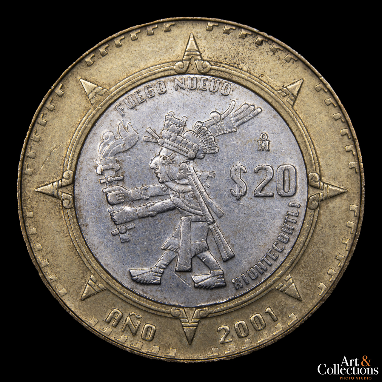 México 20 Pesos 2001 (Xiuhtecuhtli, Ceremonia Azteca del Fuego Nuevo)